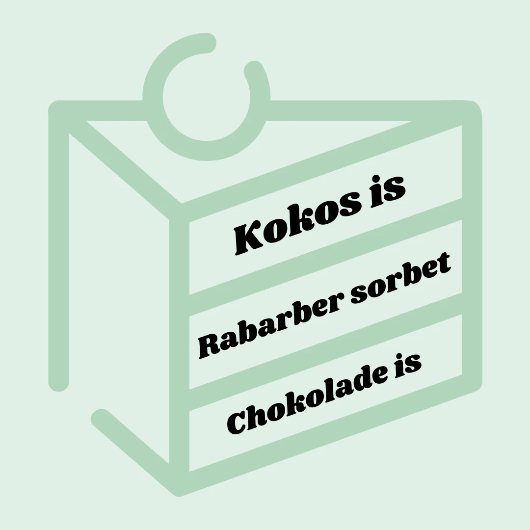 Islagkagen består af vores klassiske chokolade is i bunden, et lag rabarber sorbet i midten, og kokos is på toppen.
