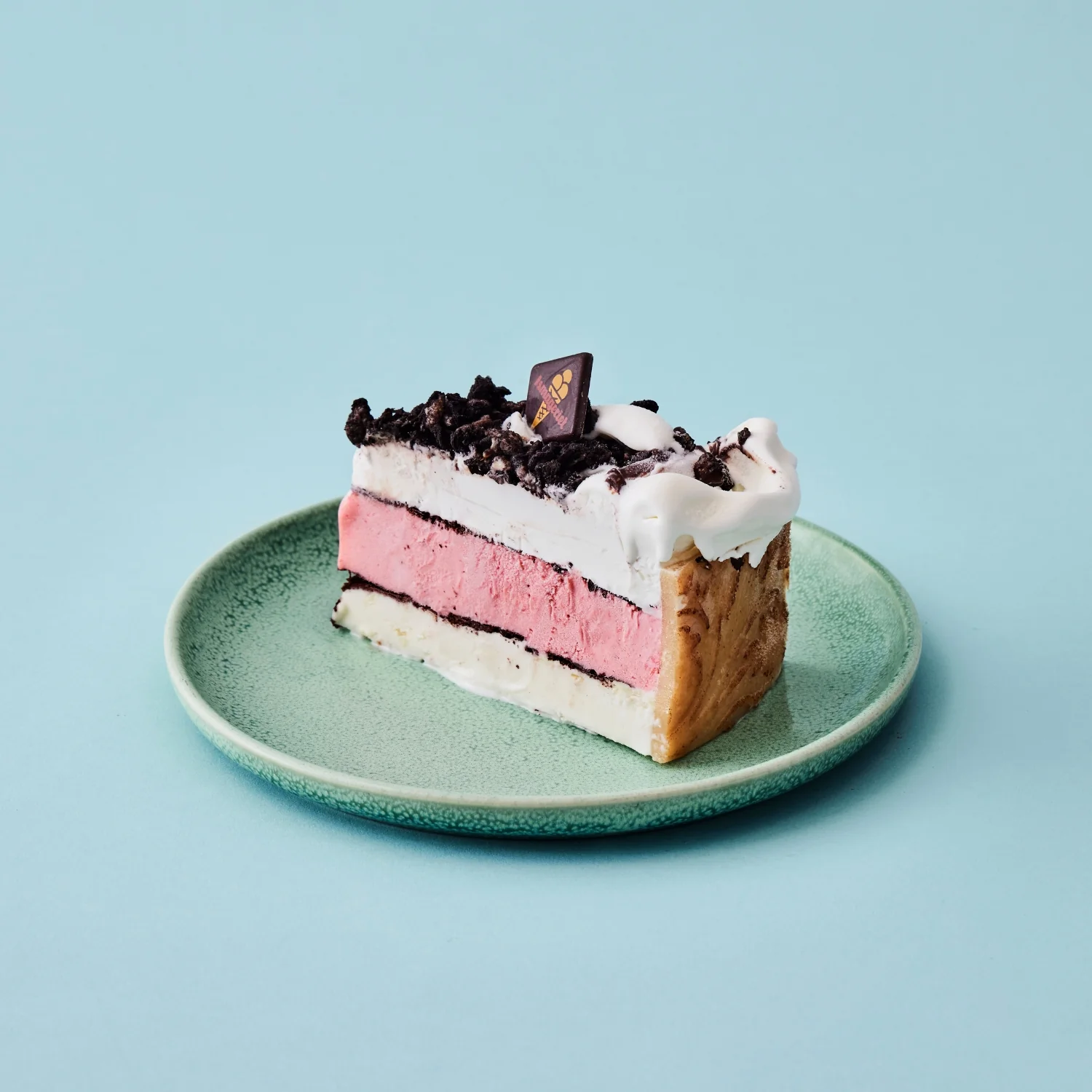Ismageriets Favorit 4 består af en bund med hvid chokolade is, en midte med jordbær sorbet og et toplag af vores ‘nutella kikse’ is.