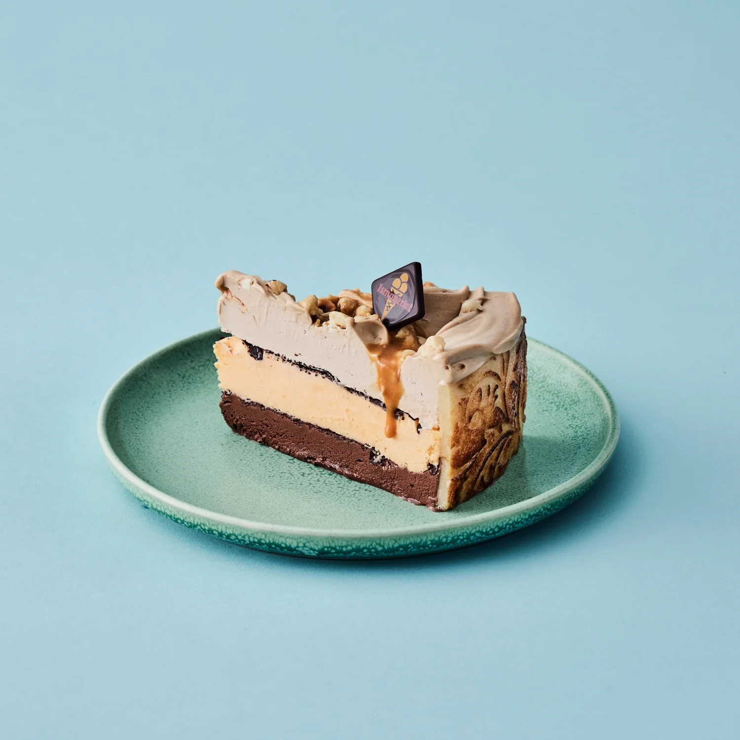 Islagene er adskilt af et lag af 70 % mørk chokolade, og er pyntet af på siderne med et marcipanbånd. Hertil modtager man en fontæne og lidt flag.